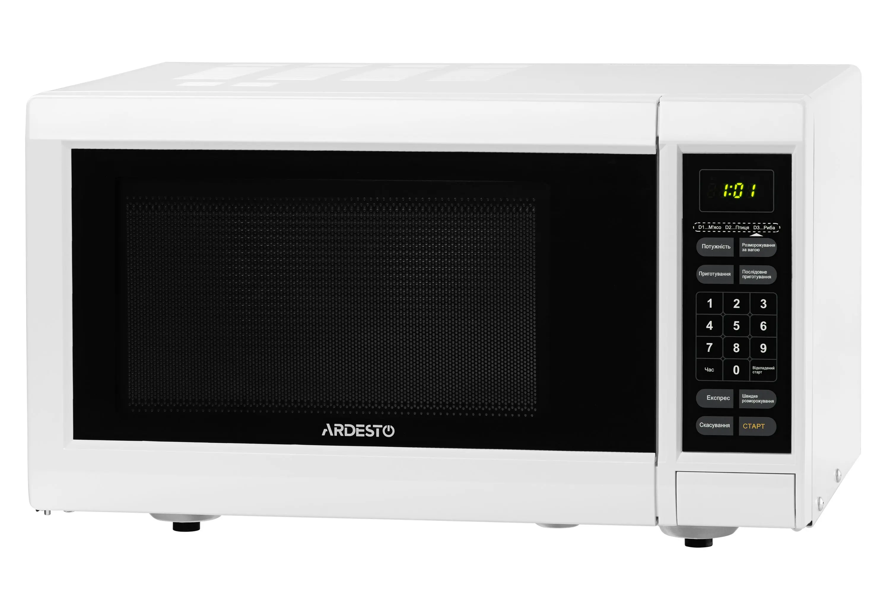 Мікрохвильова піч Ardesto 23л 900Вт дисплей білий