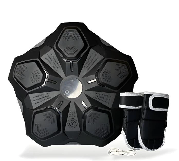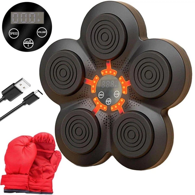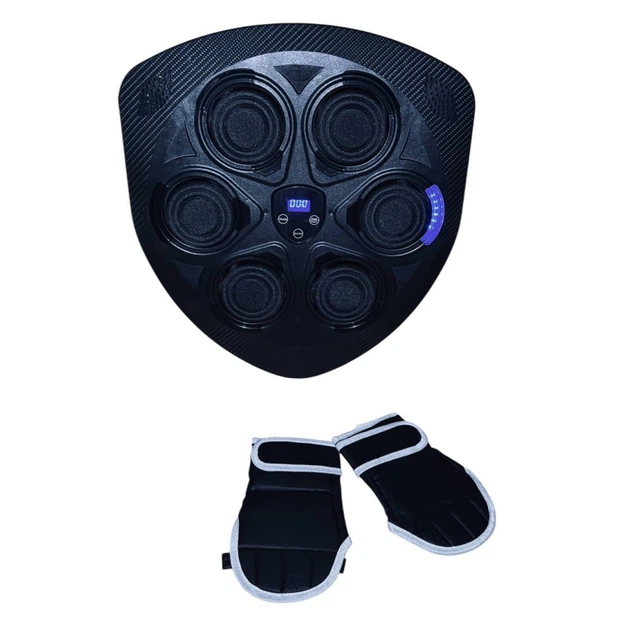 Боксерський настінний тренажер з підсвічуванням і музикою Bluetooth на 6 цілей + рукавички, Чорний