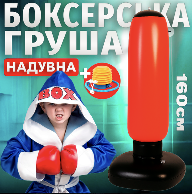 Надувна тренувальна боксерська груша 160см з насосом для тренувань вдома з боксу підлогова на підставці Червона