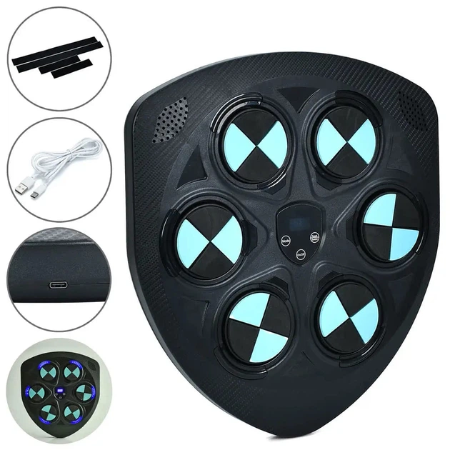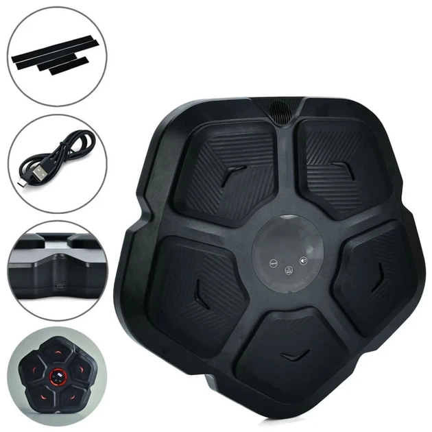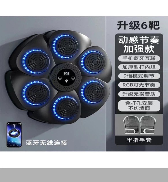 Боксерська мішень з підсвіткою, музична, з Bluetooth та дисплеєм, настінна, від мережі Black,з рукавичками