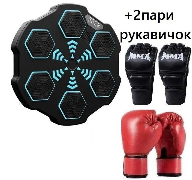 Музична інтелектуальна боксерська машина тренажер, груша для боксу з LED підсвіткою +2 пари рукавичок (дитячі і дорослі), Bl