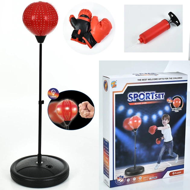 Боксерський набір на стійці, груша, 2 рукавиці, насос, світло, батарейки, електронне табло, 37,5478 см (MR 1508)