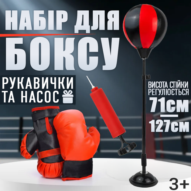 Підлогова боксерська стійка груша мішень 127см дитячий набір для боксу на підставці тренажер з рукавичками та регулюванням в