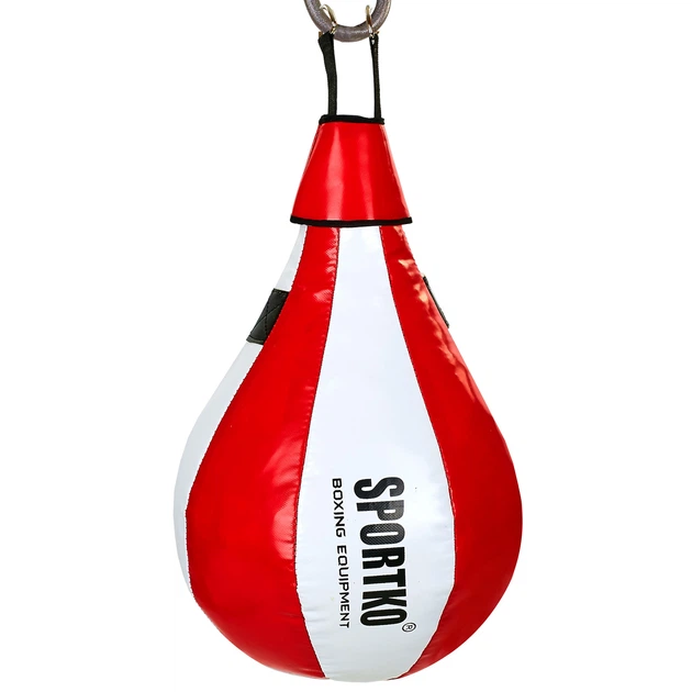 Груша набивна підвісна краплеподібна 8кг d-35см h-60см полівінілхлорид гумова крихта SPORTKO червоно-білий GP-3