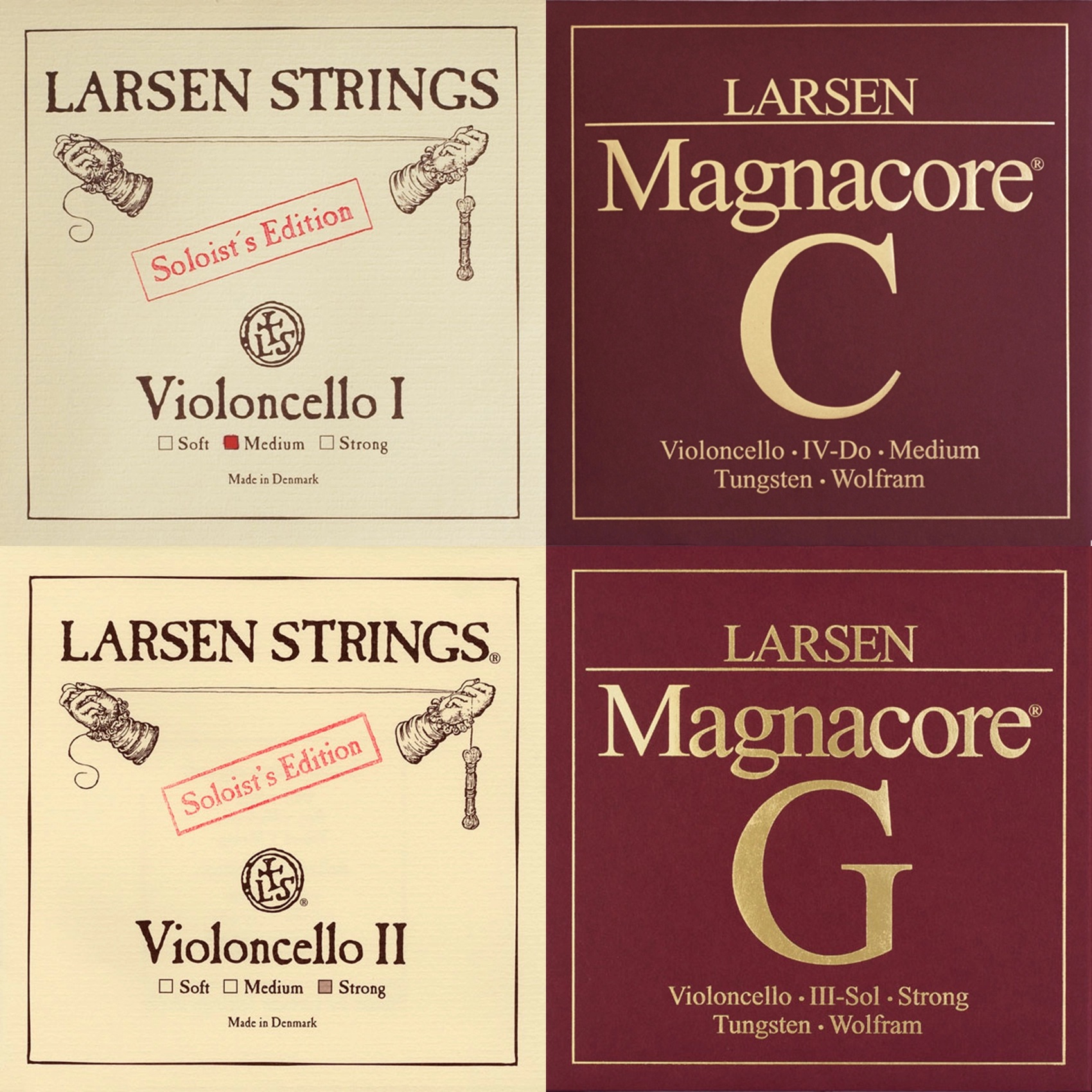 Струни для віолончелі Larsen Soloist (Ля, Ре) + Magnacore (Соль, До) (4/4, Medium)