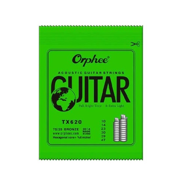 Набір струн для акустичної гітари Orphee TX620, 6 шт, калібр 10–47" (0.25–1.20 мм), Extra Light
