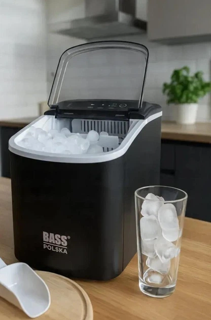 Льодогенератор електричний Bass Polska BH 10001 чорний 1.3 л генератор льоду 12 кг/добу для дому офісу та вечірок