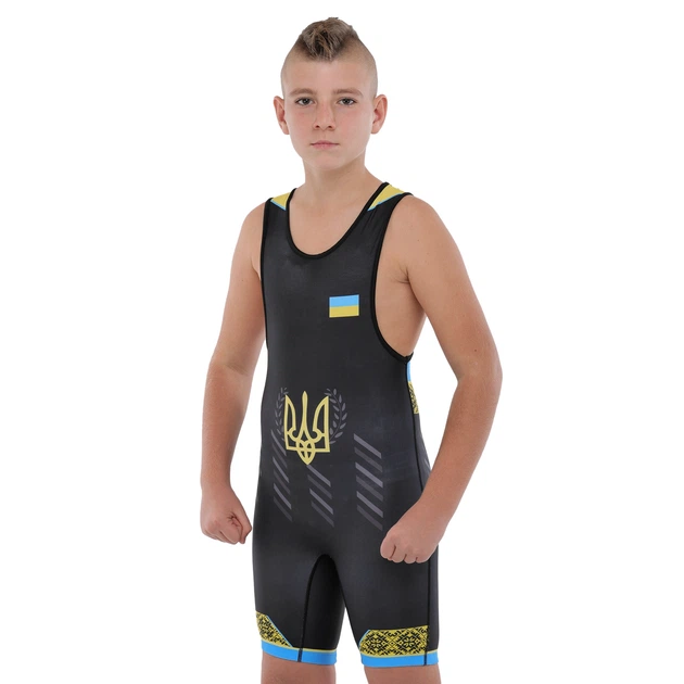 Трико для боротьби дитяче UKRAINE SP-Sport JY-6605 (біфлекс, розмір 3XS, Чорний-синій-жовтий)