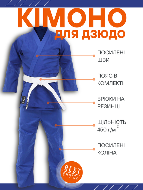 Синє кімоно для дзюдо на гумці для Джіу-джитсу для єдиноборств для дітей та дорослих 450г на м2 (РОСТ 170 см)