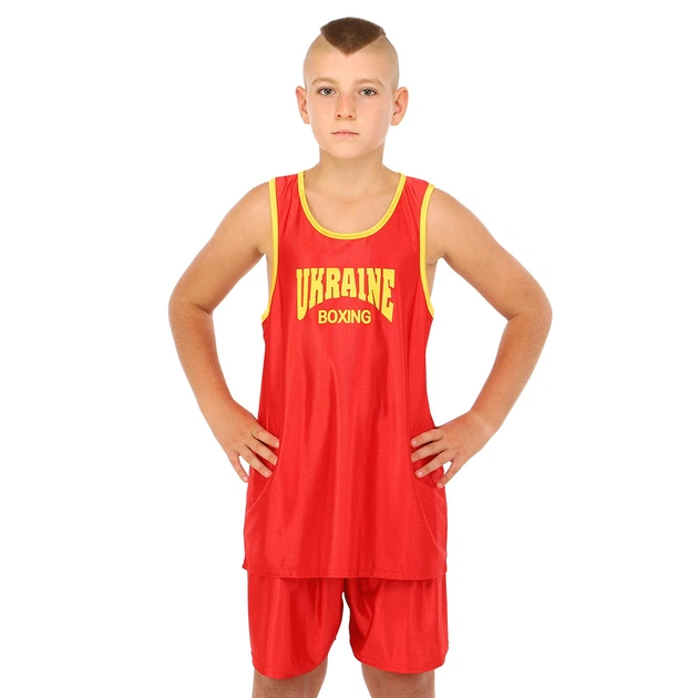 Форма боксерська дитяча майка та шорти Zelart UKRAINE розмір S, зріст 125-135см (24) червоний CO-8942