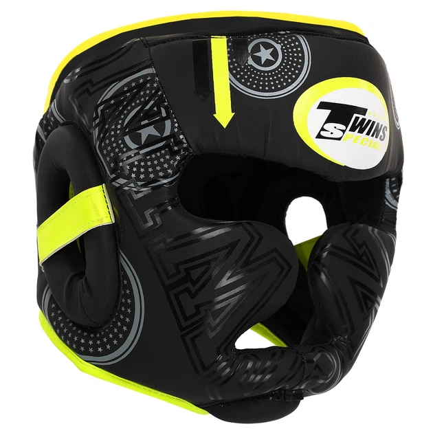 Шолом боксерський з повним захистом розмір XL Полівінілхлорид TWN чорний-лимонний BO-9481