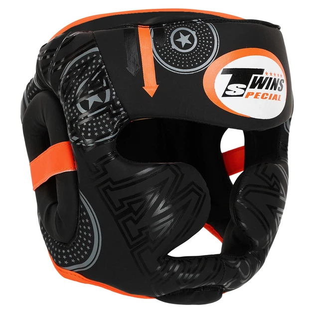Шолом боксерський з повним захистом розмір XL Полівінілхлорид TWN чорний-оранжевий BO-9481