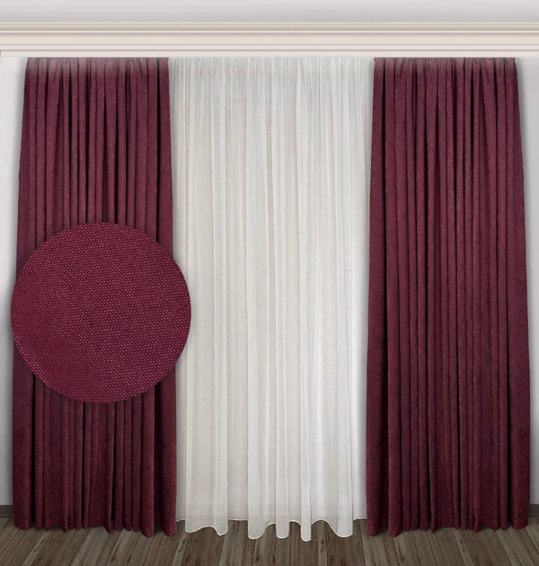 Комплект штор EkoShtory мікровелюр 200х260 cм, бордових №2197 2шт