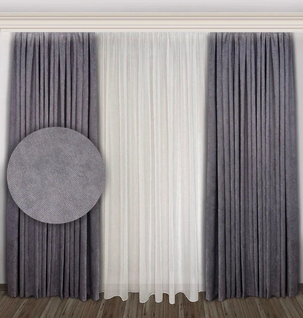 Комплект штор EkoShtory мікровелюр 200х230 см, сіро-фіолетових №2600 2шт