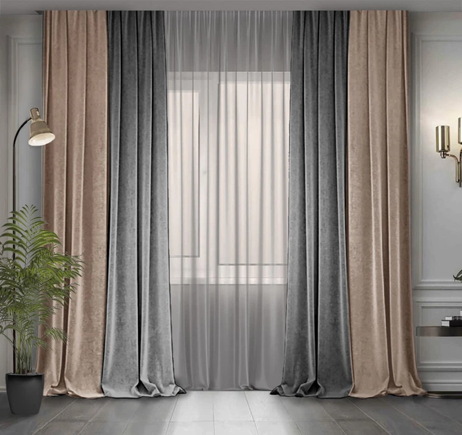 Комплект двоколірних штор Декор-Ін Мікровелюр 300x270 2 шт Сірі з Темно-бежевим (ROZ6400067166)