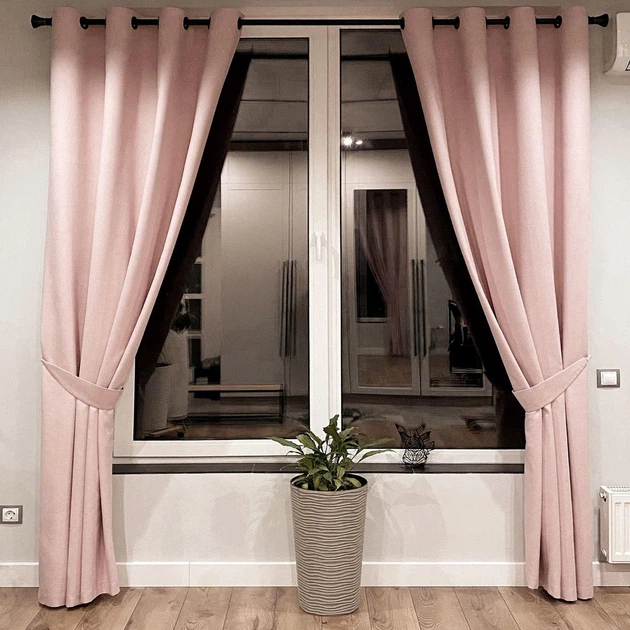 Комплект штори на сірих люверсах 2 шт з підхватами 140х250 см мікровелюр Рожево-пудровий