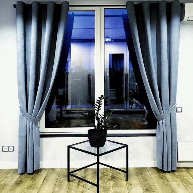 Комплект штори на чорних люверсах 2 шт з підхватами 140х250 см мікровелюр Сіро-синій