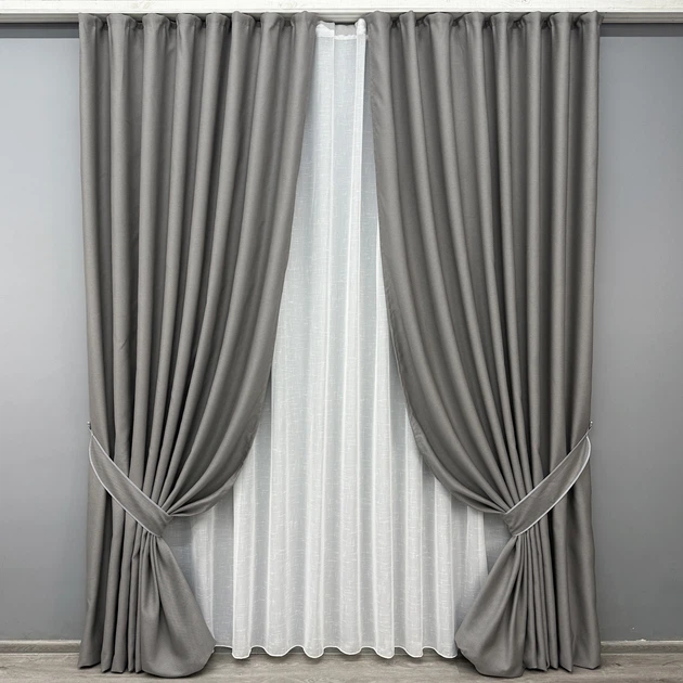 Комплект штор VR-Textil рогожка преміум TERRA LUXE 150х270 2шт і Тюль 500х270 1859ш-115т попелястий з білим 71-077/4