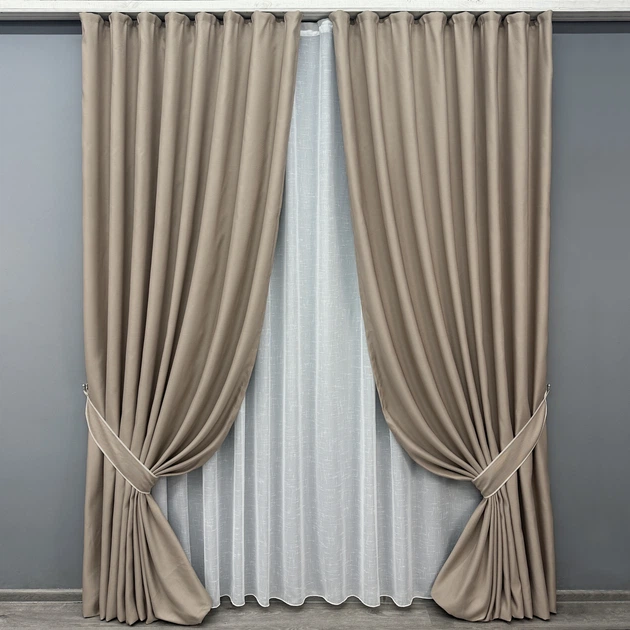 Комплект штор VR-Textil рогожка преміум TERRA LUXE 150х270 2шт і Тюль 500х270 1858ш-115т бежевий з білим 71-076/4