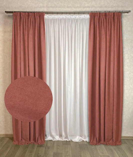 Комплект штор Diamond мікровелюр 200х220 кораловий №527, 2 шт.