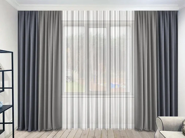 Двоколірний комплект штор MANA мікровелюр Diamond 250*270см, см, дві штори. Колір синій і сірий (525/355)