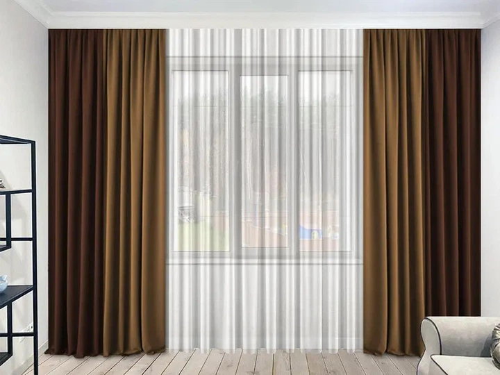 Двоколірний комплект штор MANA мікровелюр Diamond 250*240см, см, дві штори. Колір коричневий і коричнево-рудий (216/217).