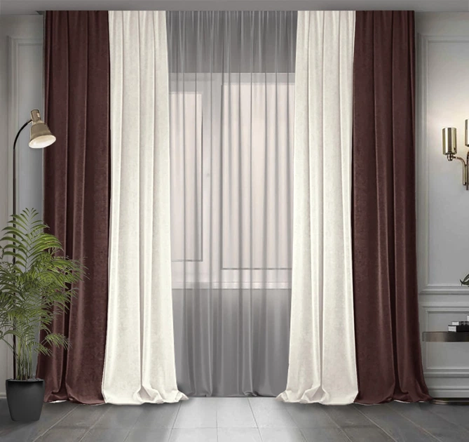 Двоколірний комплект штор MANA мікровелюр Diamond 250*260см, см, дві штори. Колір коричневий і коричнево-рудий (216/217).