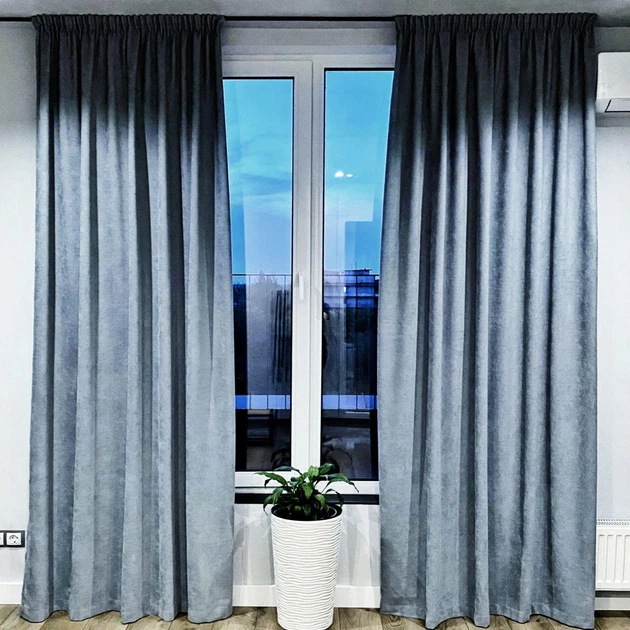 Комплект штори на тасьмі 2 шт ширина-220 висота-250 мікровелюр Сіро-блакитний
