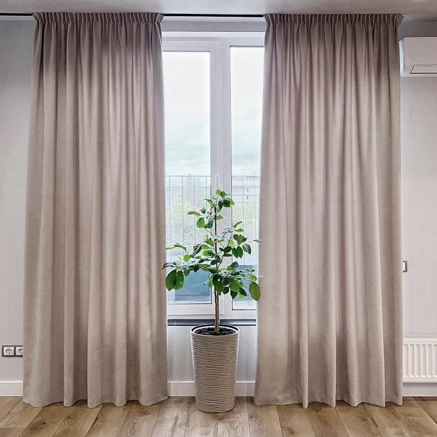 Комплект штори на тасьмі 2 шт ширина-220 висота-220 мікровелюр Беж-капучино