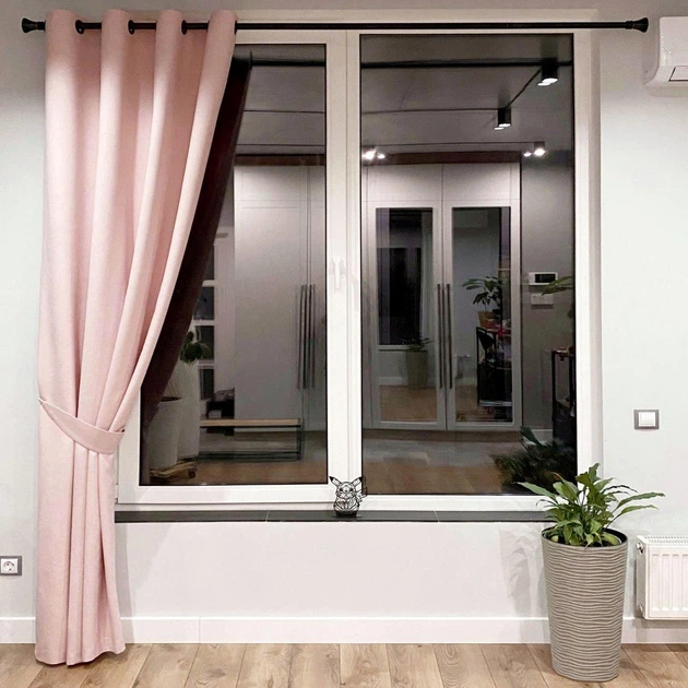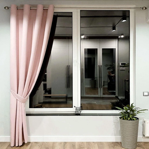 Штора на чорних люверсах 1 шт з підхватом 295х250 см мікровелюр Світло-рожевий
