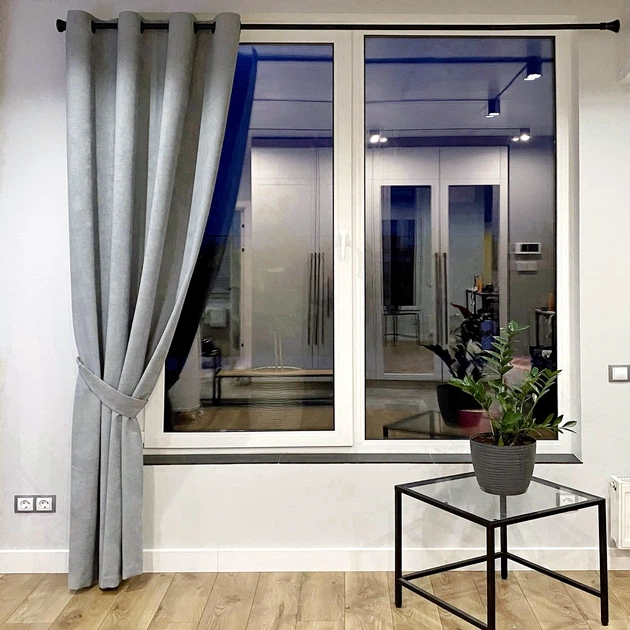 Штора на сірих люверсах 1 шт з підхватом 295х250 см мікровелюр Сірий