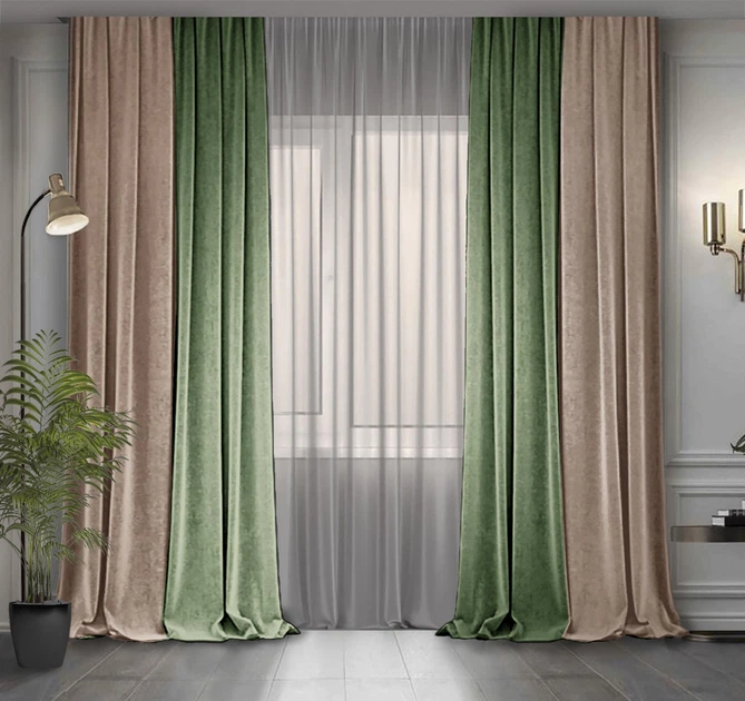 Комплект штор Декор-Ін Гюрем шовк Сходу 175х265 2 шт. Оливкових (ROZ6400054721)