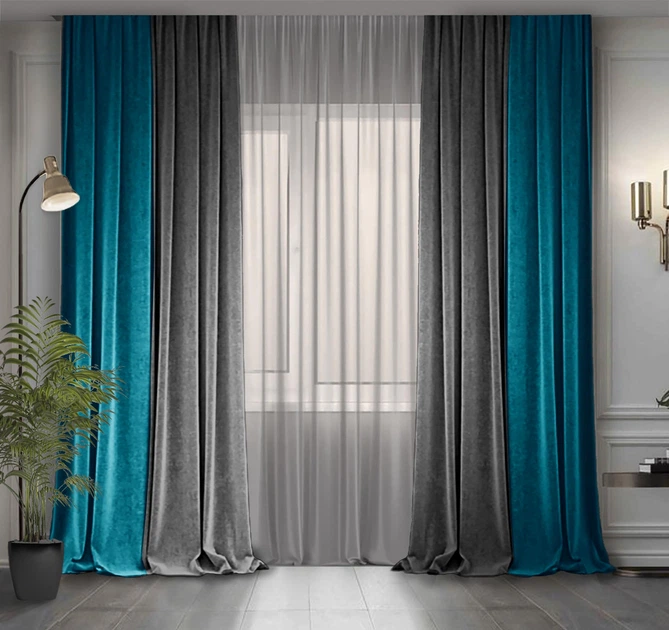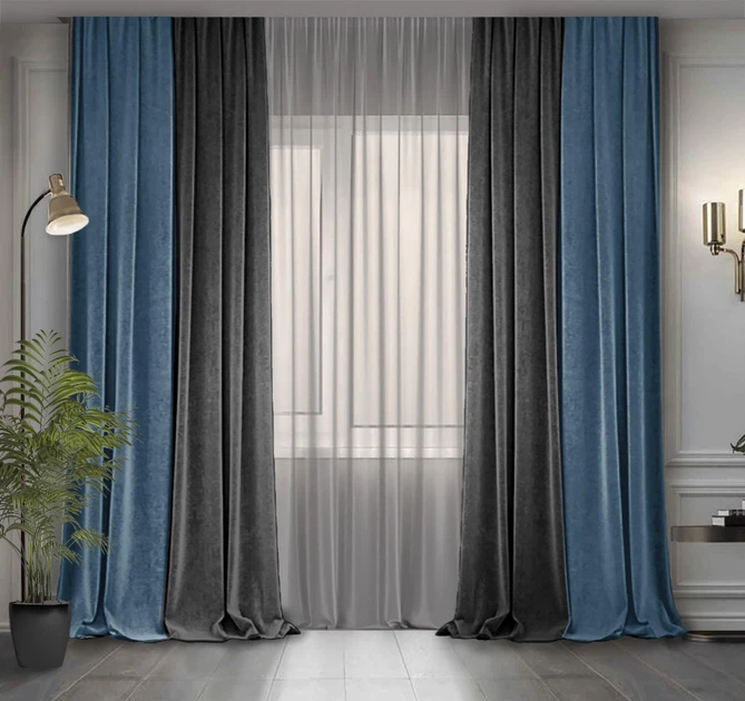 Комплект штор Декор-Ін Гюрем шовк Сходу 175х260 2 шт. Синьо-сірих (ROZ6400054792)