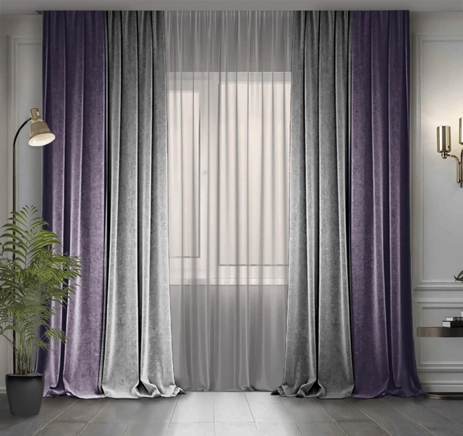 Комплект двоколірних штор Декор-Ін Мікровелюр 300x290 2 шт Сірий з Темно-бузковим (ROZ6400066720)