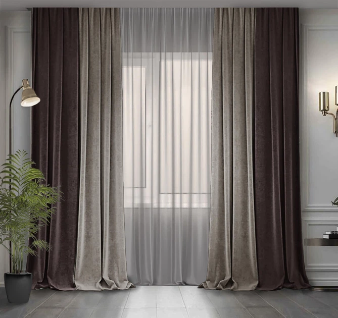Комплект двоколірних штор Декор-Ін Мікровелюр 300x250 2 шт Сіро-бежеві з Коричневим (ROZ6400065818)