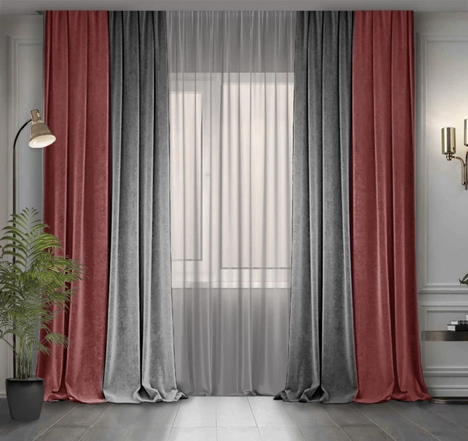 Комплект двоколірних штор Декор-Ін Мікровелюр 300x255 2 шт Сірі з Теракотовим (ROZ6400067555)