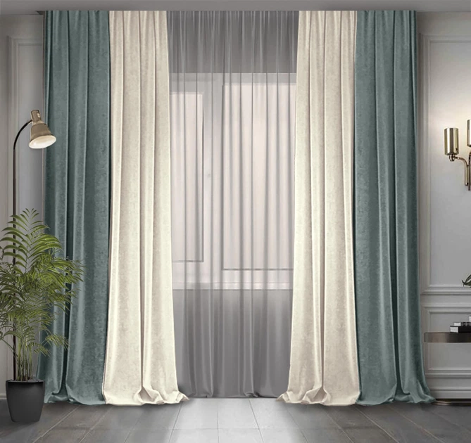 Комплект двоколірних штор Декор-Ін Мікровелюр 300x255 2 шт Молочний зі Світло-зеленим (ROZ6400066435)