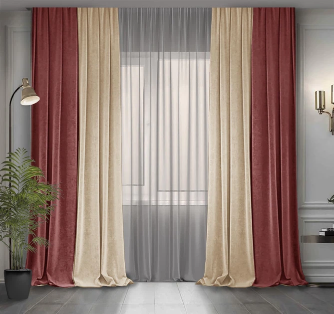 Комплект двоколірних штор Декор-Ін Мікровелюр 300x270 2 шт Бежевий з Теракотовим (ROZ6400065571)
