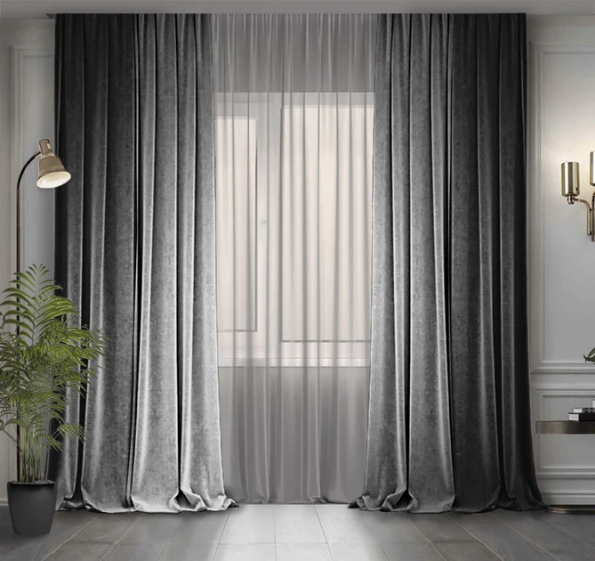 Комплект двоколірних штор Декор-Ін Мікровелюр 300x290 2 шт Сірі з Темно-сірим (ROZ6400067224)