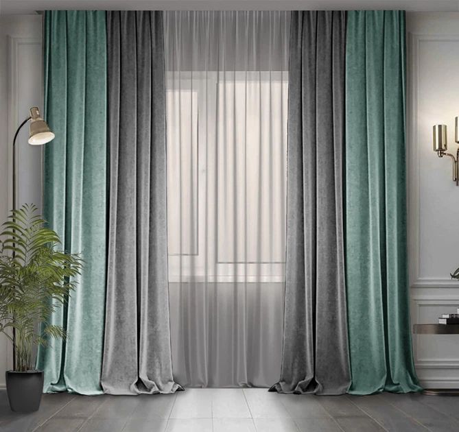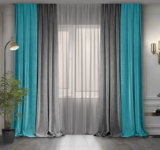 Комплект двоколірних штор Декор-Ін Мікровелюр 300x275 2 шт Сірі з Блакитною бірюзою (ROZ6400066859)