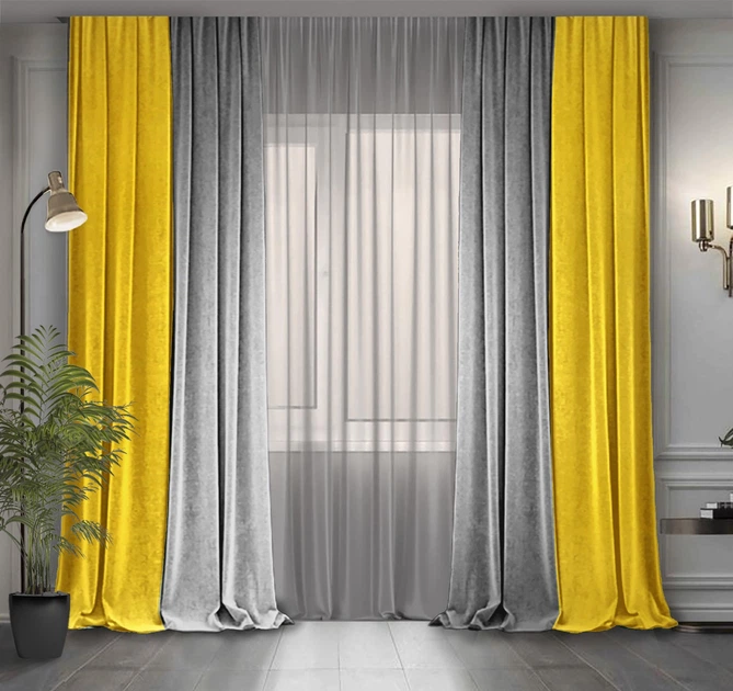 Комплект двоколірних штор Декор-Ін Мікровелюр 300x265 2 шт Жовті зі Світло-сірим (ROZ6400065737)