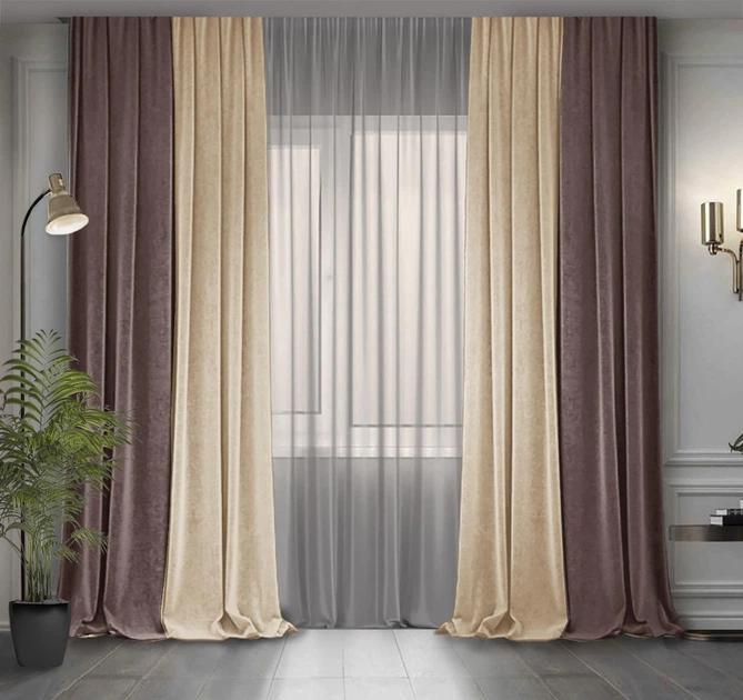 Комплект двоколірних штор Декор-Ін Мікровелюр 300x275 2 шт Бежевий зі Світло-коричневим (ROZ6400065516)