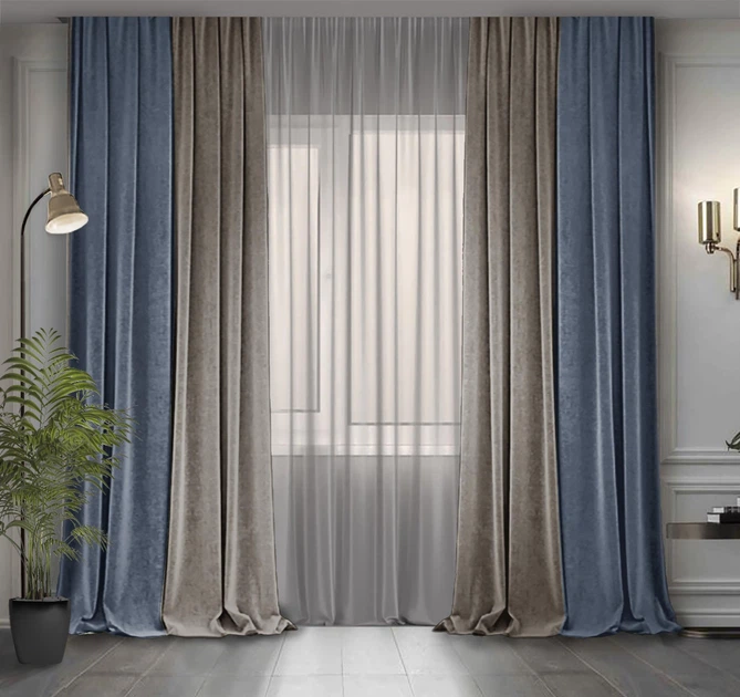 Комплект двоколірних штор Декор-Ін Мікровелюр 300x250 2 шт Сіро-бежеві з Сіро-блакитним (ROZ6400065790)
