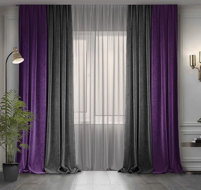 Комплект двоколірних штор Декор-Ін Мікровелюр 300x250 2 шт Світло-сірий з Фіолетовим (ROZ6400066686)