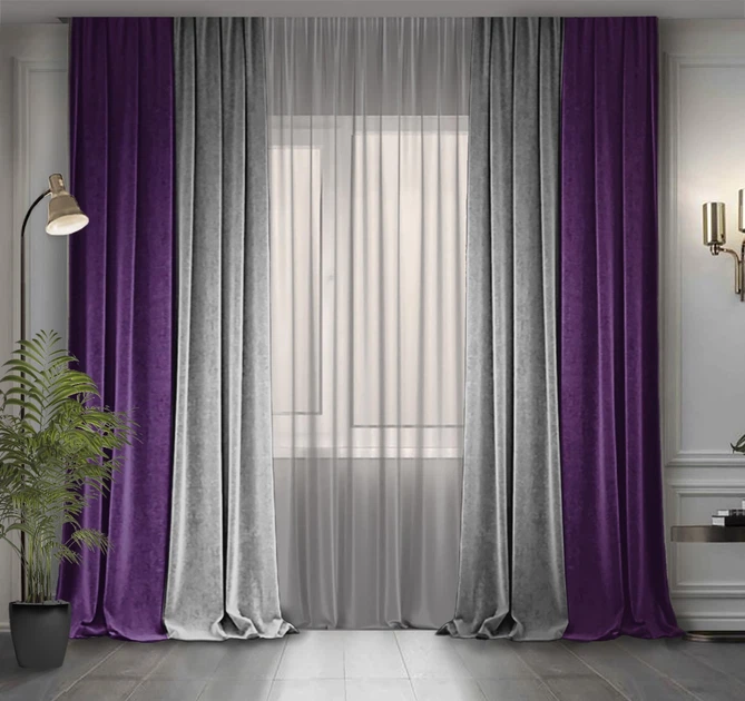 Комплект двоколірних штор Декор-Ін Мікровелюр 300x275 2 шт Світло-сірий з Фіолетовим (ROZ6400066691)