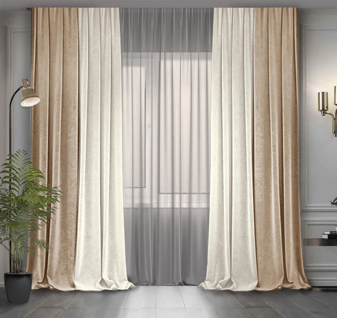 Комплект двоколірних штор Декор-Ін Мікровелюр 300x290 2 шт Молочний з пісочним (ROZ6400065992)