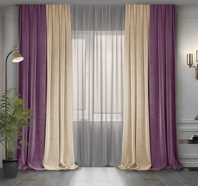 Комплект двоколірних штор Декор-Ін Мікровелюр 300x275 2 шт Бежевий з Рожево-бузковим (ROZ6400065488)