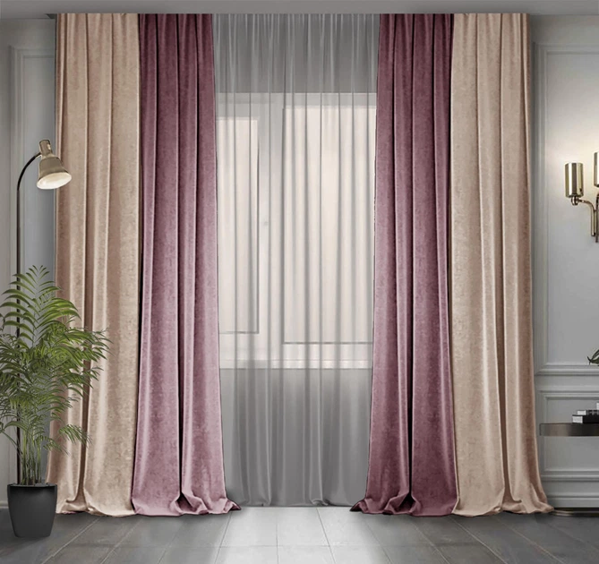 Комплект двоколірних штор Декор-Ін Мікровелюр 300x260 2 шт Бежевий з Пудровим (ROZ6400065457)