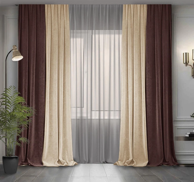 Комплект двоколірних штор Декор-Ін Мікровелюр 300x255 2 шт Бежевий зі Світло-коричневим (ROZ6400065512)