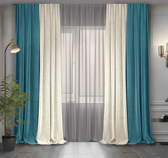Комплект двоколірних штор Декор-Ін Мікровелюр 300x275 2 шт Молочний з Бірюзовим (ROZ6400066047)